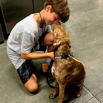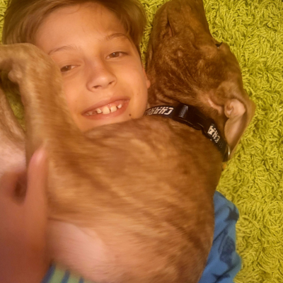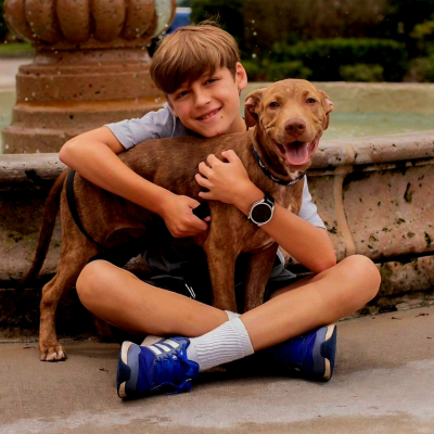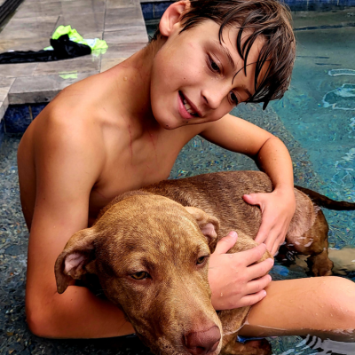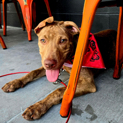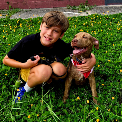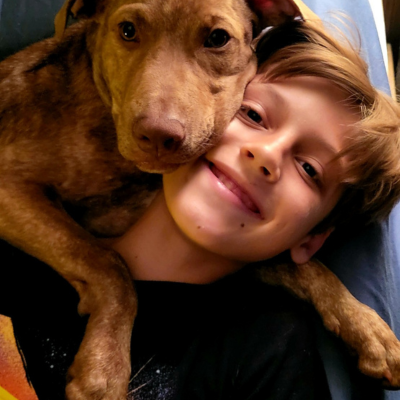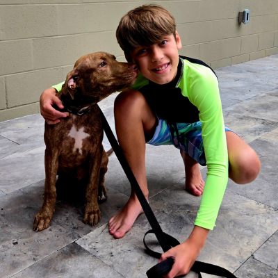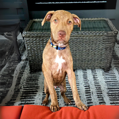 Brownie is a very happy and sweet guy who will give you all the snuggles. He loves to go outside and to follow you around and play. He is great with other dogs and kids. He is crate trained and rides well in the car.