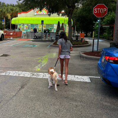 Calypso loves playing with sticks and she loves playing with me. If I tap her on the butt and run the other way, she will follow and engage with me. Calypso also loves the water. On our trip to the beach she ran into the water and hopped over the waves!
