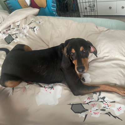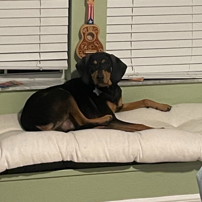 Jarvis is a very smart and gentle dog who would love nothing more than to have a family. He loves going on adventures and walks, playing with his rope toy, and playing fetch with a tennis ball! And he'll snuggle right next to you!