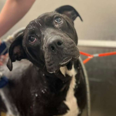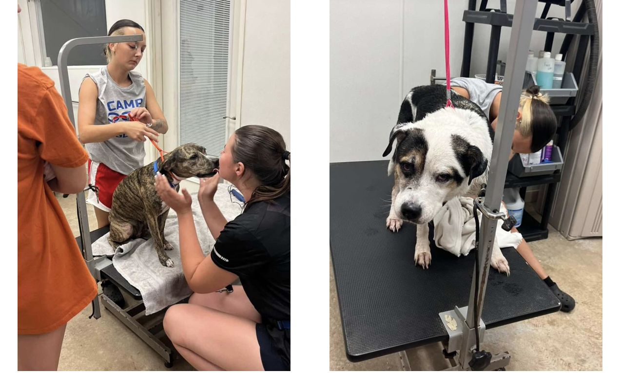 After that, it was time for baths. Each of the dogs got flea baths, their ears cleaned, nails cut, and lots of praise from their campers. After their baths, the dogs relaxed in their beds with their campers.
