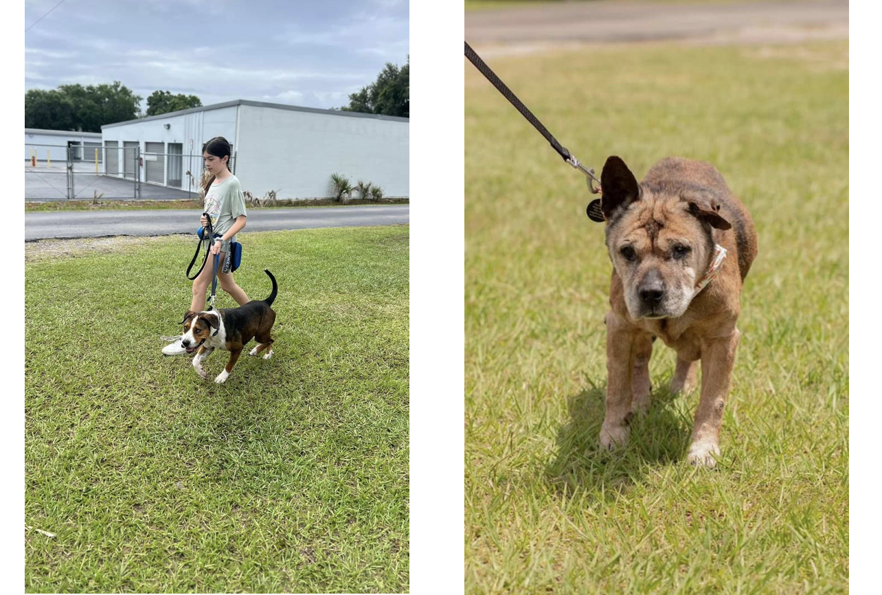 After completing their first training session, the dogs were ready for a walk and headed outside!