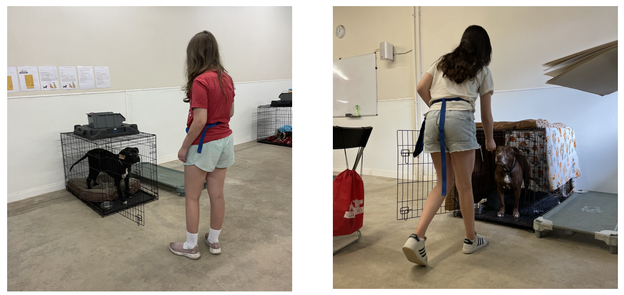 They also began to work on distractions which could be turning around or stomping their feet. This offered a challenge to the dogs but, even so, the dogs waited patiently in their crates