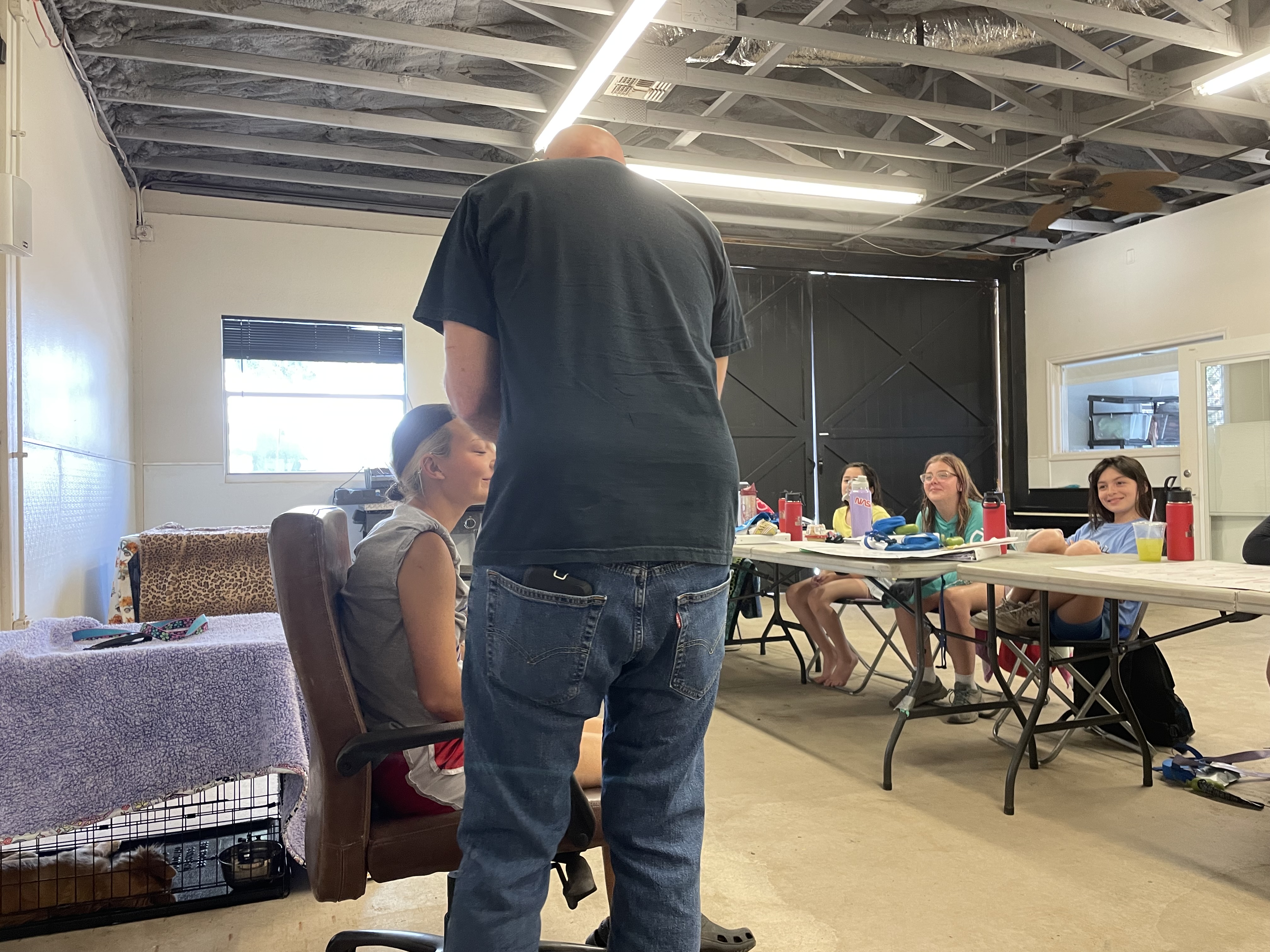 On Friday morning, the campers and dogs arrived at the barn, cleaned their crates, and shared their adventures from the night before.