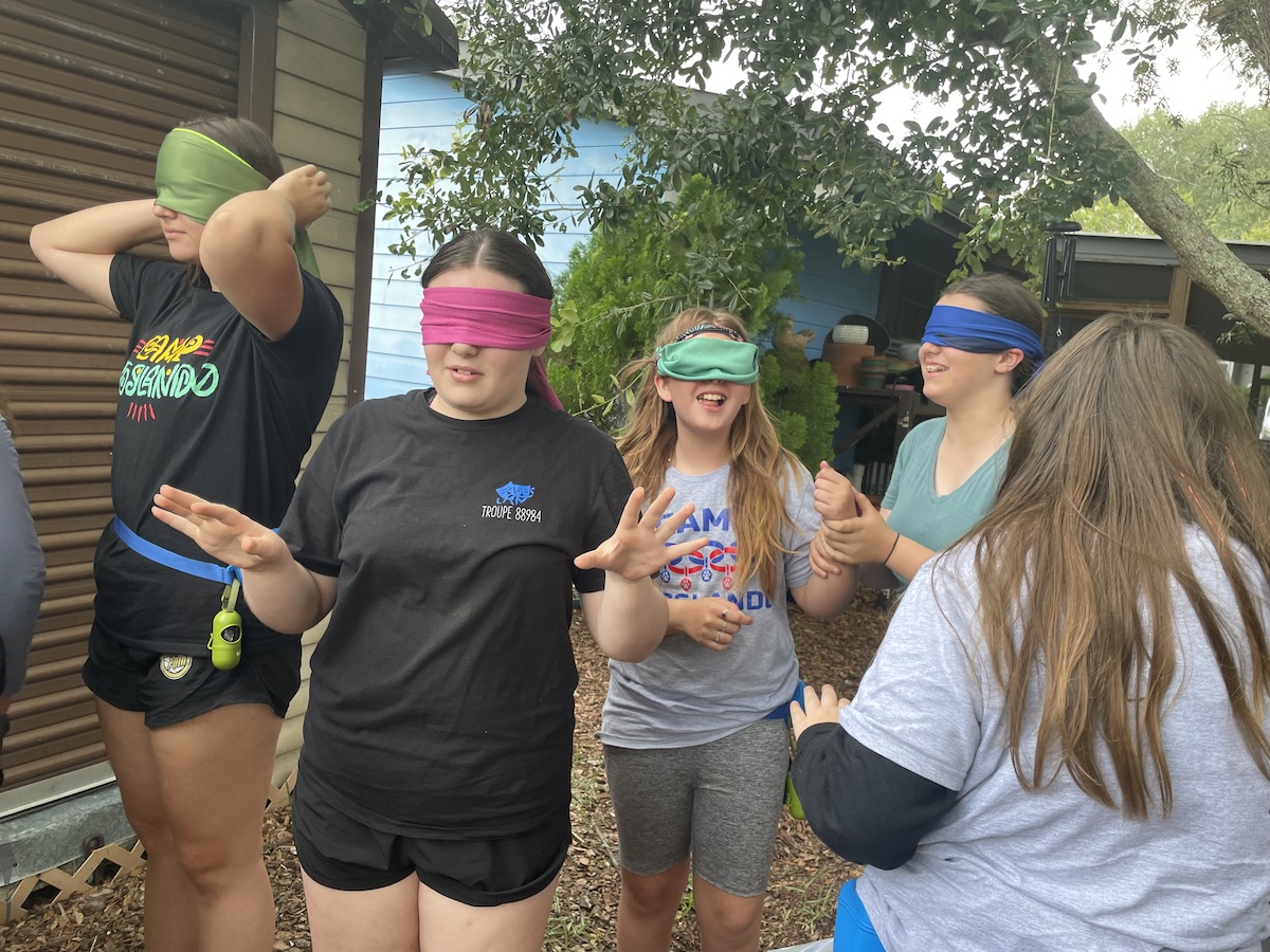 After lunch, the campers were given a challenge. Everyone was blindfolded and had to find their way to the end of Doglando's Nature Play and back.
