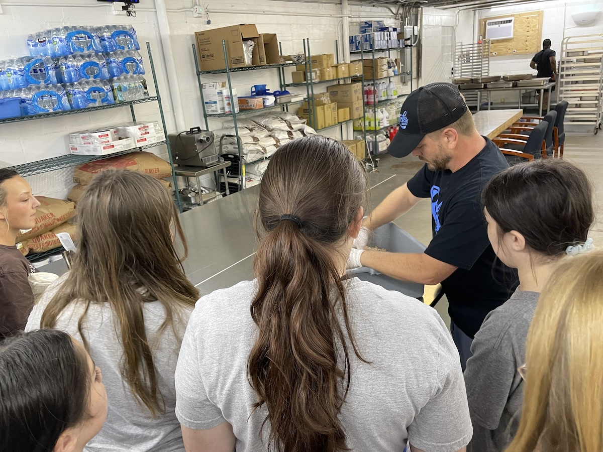 There, they learned the importance of a fresh food diet for dogs and what that entails. They got to see the different steps of the dog food-making process, from cooking potatoes, to dicing hard-boiled eggs, to mixing up the finished product and stamping it into identical rectangles to be frozen and sold.