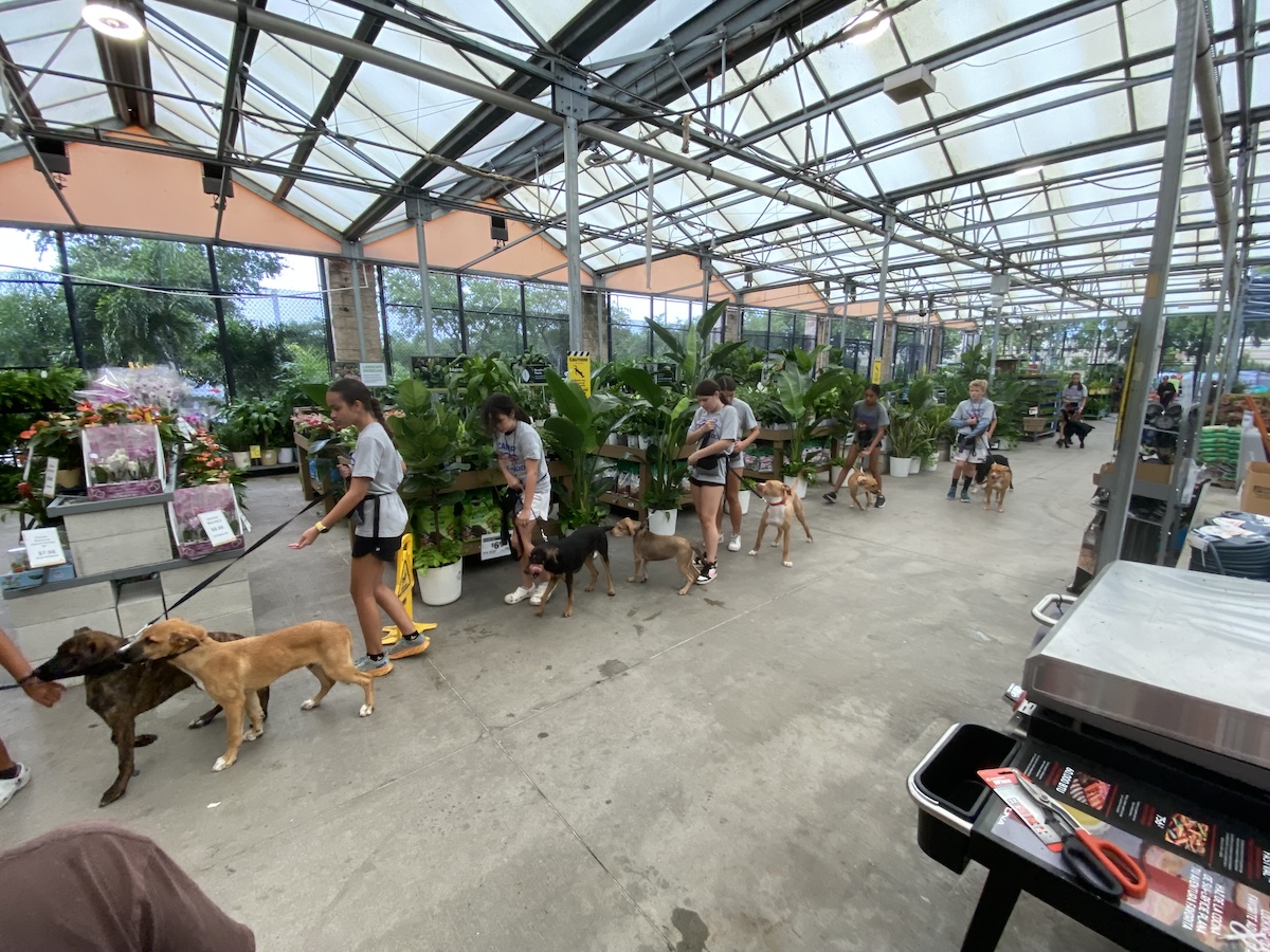 This is a less controlled environment where more objects and distractions come into play. The campers let their dogs explore the garden section before going inside where the spacing was tighter, and they had to walk in a line. This was also a chance to get some exposure for the dogs, as we all want them to find good loving homes.